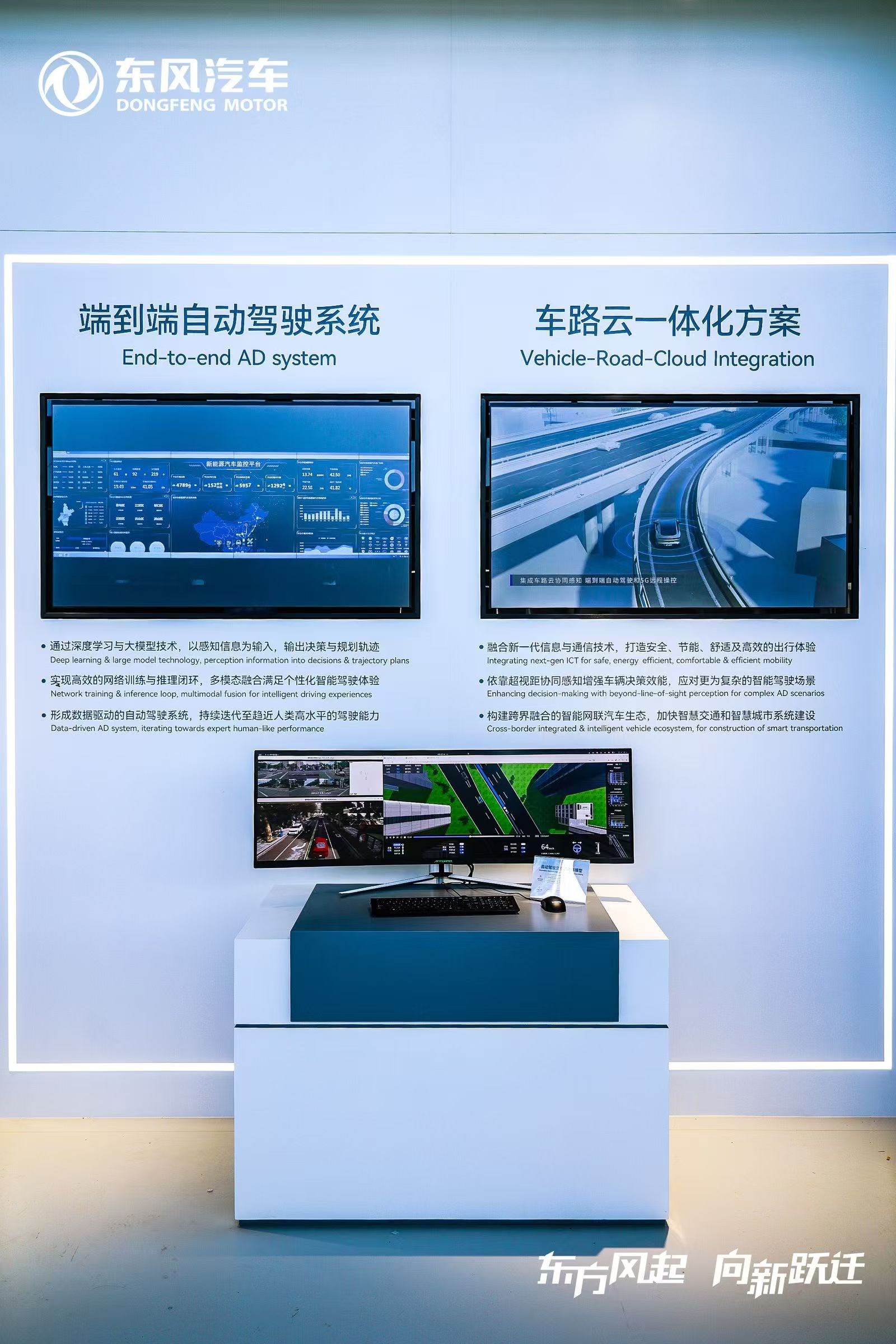 智驾技术方面,东风汽车公司已经独立研发并大规模生产了L2+级别的智能驾驶技术,并且车路云一体化技术已经在15个省份、35个城市成功实施运营。公司将继续推进单车智能和车路云一体化技术的发展,重点强化汽车自主定义、应用软件开发、系统集成和资源整合的能力。目标是使L2+级别的自动驾驶功能成为标准配置,加速推进端到端、全模态感知和智能驾驶大模型等技术的应用,以实现L3和L4级别的自动驾驶技术的大规模生产。