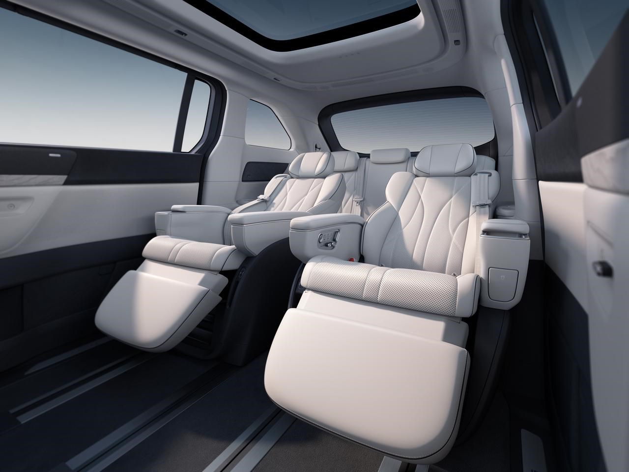 第三排同样进行升级,支持180°躺平并带加热功能。
