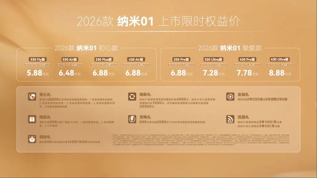 10月16日,东风奕派以“十万严选、共赴美好”为主题,推出2026款纳米01与2026款eπ008五座版。其中,2026款纳米01限时焕新指导价5.88万起,2026款eπ008五座版限时焕新指导价15.99万起,覆盖小型精致代步与家庭品质出行两大核心场景。