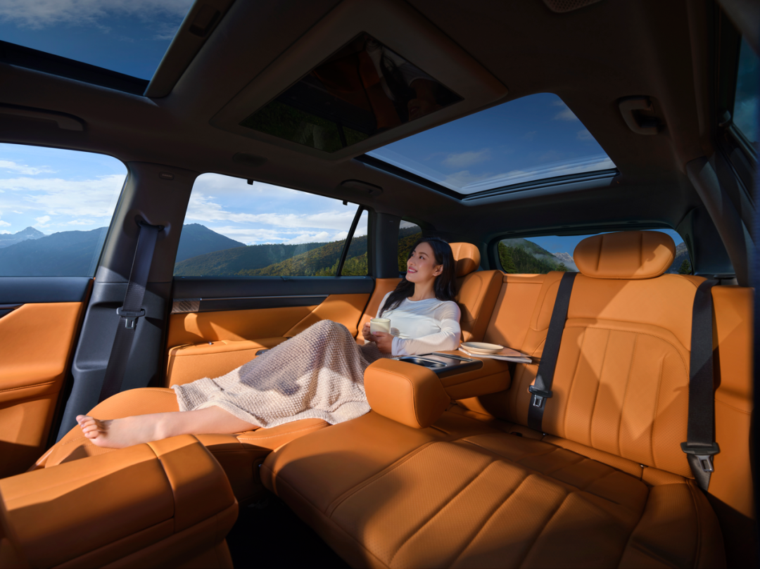 新车搭载同级唯一二排电动魔毯座椅,形成0.8平米休息空间。主副驾座椅放倒后可拼接成超2米L型双边“贵妃榻”。动力上提供增程、纯电两种选择,推出超阔版、超尊版两种配置共四款产品,限时焕新指导价15.99-17.16万元,还可享受包含金融礼、质保礼、交付礼、选装礼、流量礼等多重上市权益。