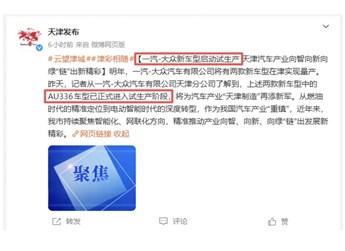 一汽-大众新车型在天津启动试生产,未来推进“油电共线”生产