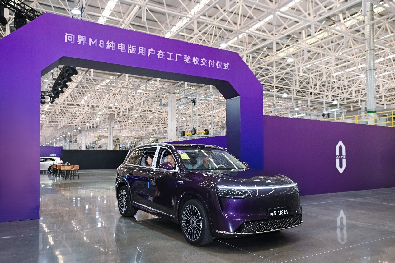 9月8日,问界M8纯电版用户在工厂验收交付仪式于重庆赛力斯超级工厂圆满举办。来自全国各地的多组问界M8纯电版用户一同参观了赛力斯超级工厂,并亲自参与自己车辆的工厂终检验收,赛力斯集团董事长(创始人)张兴海向用户交付新车钥匙,将用户“认可才提车”模式持续常态化,实现高品质、高质量交付。
