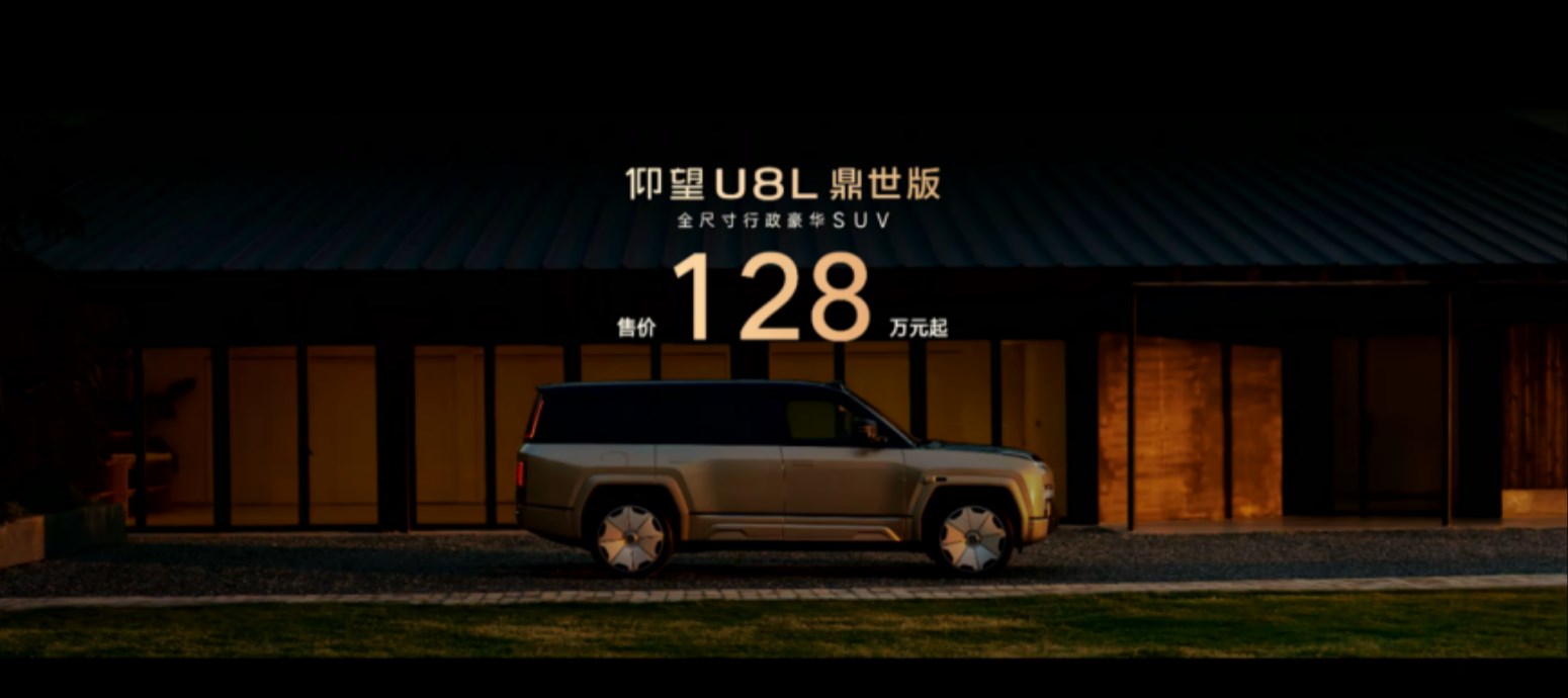9月12日,仰望汽车旗下全尺寸行政豪华SUV——仰望U8L鼎世版正式上市,售价128万元,新车拥有易四方、云辇-P+、3纳米智能座舱芯片、应急浮水、高速爆胎稳行、隔空手势控车、天神之眼A、全新首创全铝大车架等,欲重构全尺寸行政豪华SUV新标杆。