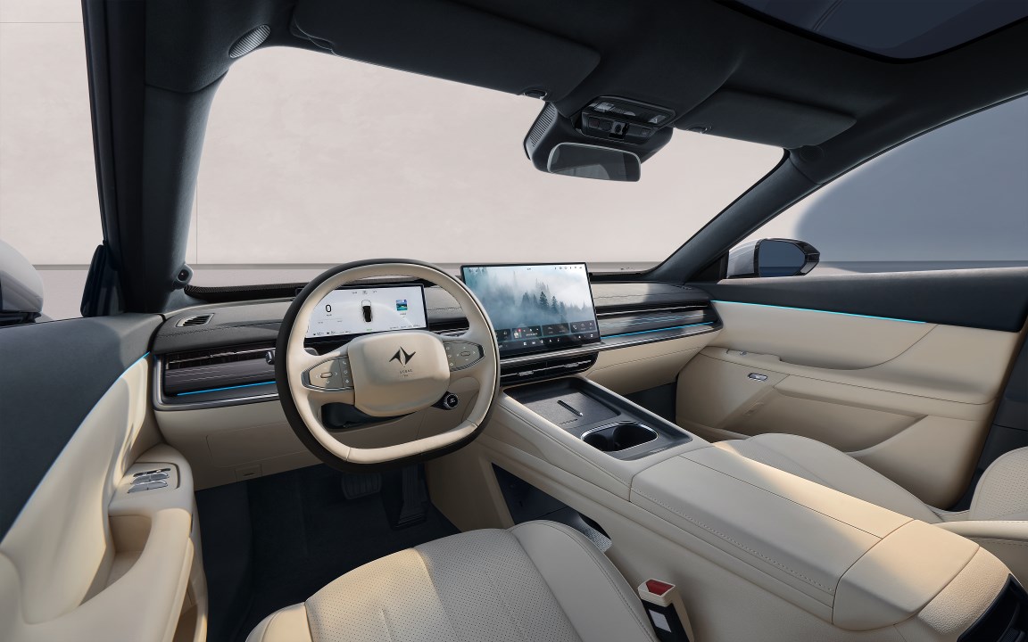 内饰采用超纤柔类麂皮绒与云感亲肌皮质包覆,配备WANOS 2.0全景声音响、智能香氛、64色音乐律动氛围灯等舒适配置。车身结构采用高强度笼式设计与1500MPa热成型钢,已获C-NCAP五星安全认证与“中国十佳车身”评价。