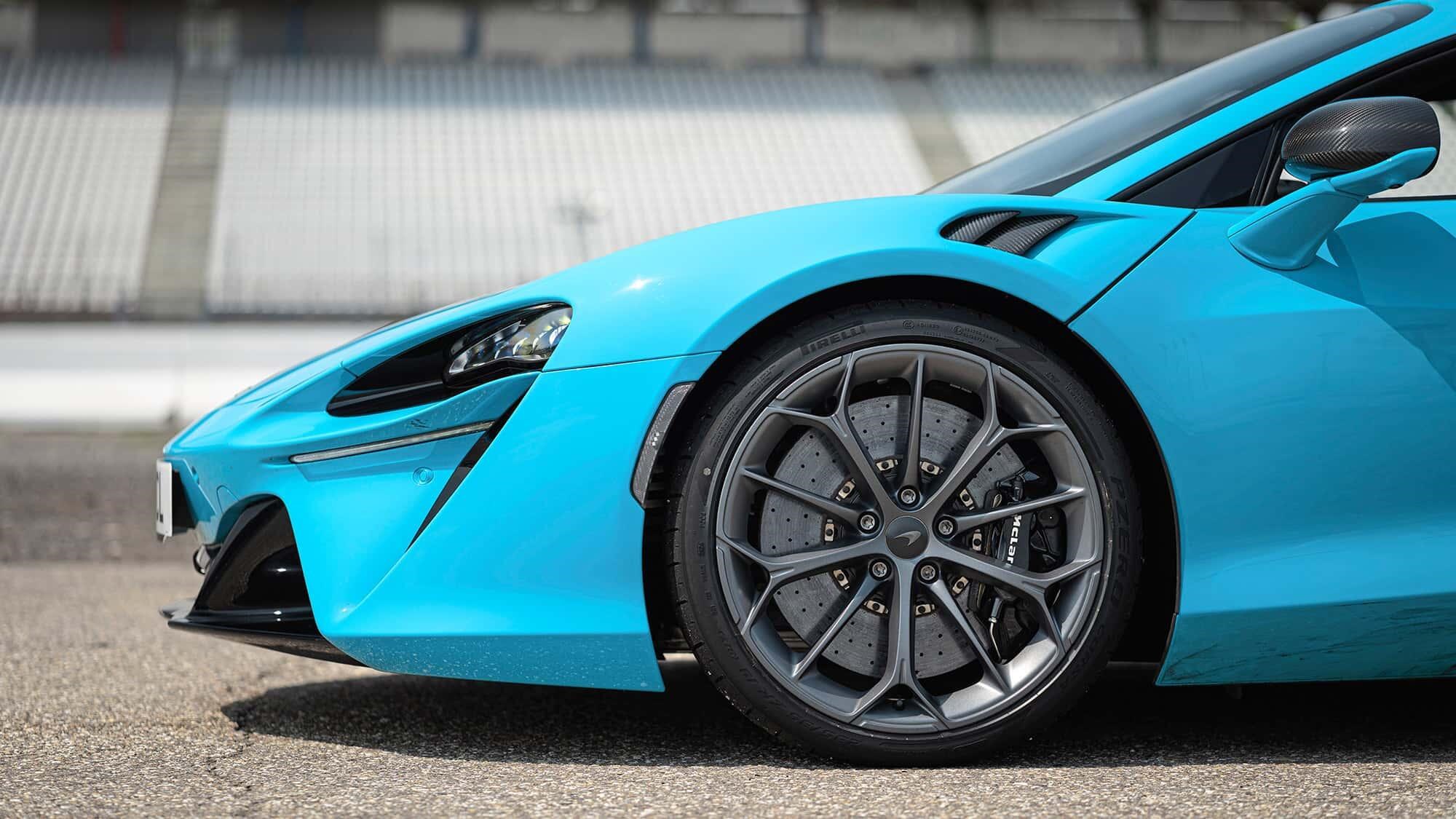 这里比拼的,是信任感——对初段咬合、对热衰减,以及对ABS标定的信任。简而言之:Artura在这三点上都表现出色。热车状态下,100~0公里/小时的制动距离仅为31.3米,这是顶级水准;碳陶瓷刹车系统在多圈高强度驾驶后依然稳定;在带转向角制动时,车辆并非100%稳定,但它的“不稳定”是可预期、可控制的。
