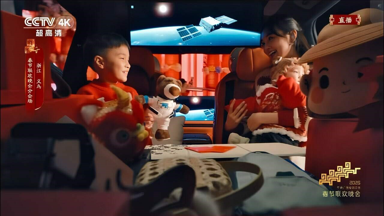 【2026年2月16日,义乌】丙午马年除夕,中央广播电视总台《2026年春节联欢晚会》义乌分会场华灯璀璨,春意融融。百余辆领克900整齐排列,组成寓意吉祥的“吉”字车阵,气势恢宏,蔚为壮观。车内大屏播放着“领克900号”卫星成功发射的振奋画面,后备箱中满载着象征团圆与富足的各式年货,“天地联动”呈现中国智造创新力量与中华优秀传统文化的深度融合。领克义乌生产基地的近千名产业工人,与领克900一起向全国人民和海外华人致以“新春快乐、大吉大利”的真挚祝福,展现出奋斗者的实干与热忱,以及对美好生活的无限期许。领克900以“百车成‘吉’,千人同贺”的宏大创意,为全球华夏儿女献上独具匠心的马年新春贺礼,描绘出新时代家国同庆、万象更新的盛世图景。