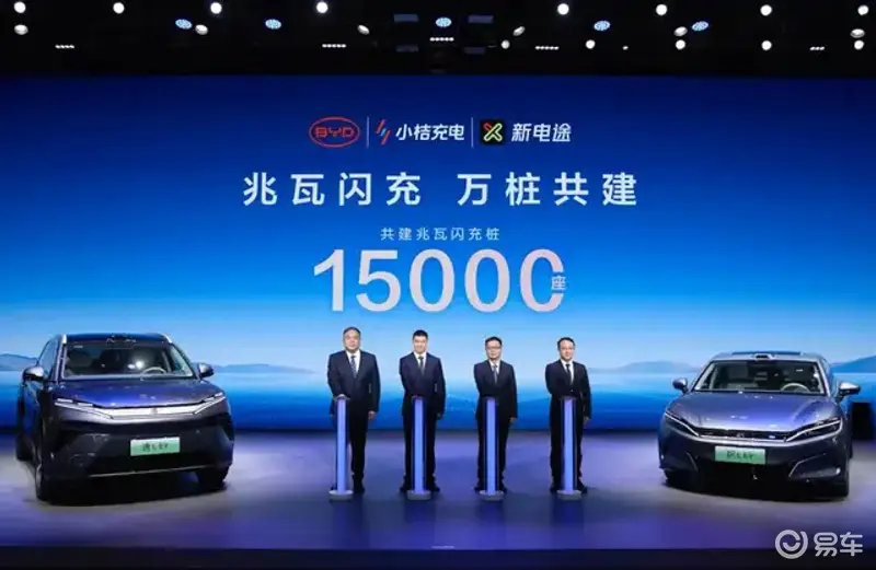 比亚迪并未单打独斗。2025年端午节期间的粤港澳车展上,比亚迪与小桔充电、新电途联合发布兆瓦闪充生态共建计划: