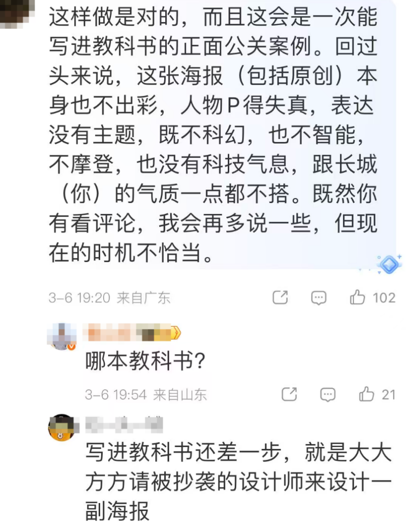 第三路人,犀利质疑。说这是长城自导自演的营销事件。