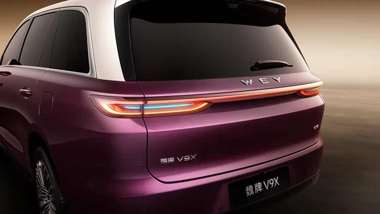 魏牌V9X前脸以中轴对称“立其气”、重檐结构“守其神”,将东方建筑的精气神儿定格于车头,并有如高定珠宝般精致深邃的悬浮车标画龙点睛;融合定瓷“举重若轻”匠人智慧的侧身曲面,金镶玉把手、飞檐烽火台尾灯及小蓝灯等设计优雅灵动且注重安全实用;“天地交泰”紫金双色,将东方美好寓意与顶级喷涂工艺结合,打造经得起岁月考验的视觉表达;内饰凝练“悠”“雅”内核,以环抱式布局营造家庭温馨氛围,以媲美MPV的六座空间实现“豪华不偏袒”,以奢材巧工、全维奢享配置打造舒适体验,整体呈现有温度的“东方家宅”。同时,魏牌V9X从用户需求出发,通过行业首创门侧无线充电板、多元储物空间、暖心老幼配置等细节,让豪华落地日常出行的方寸之间。