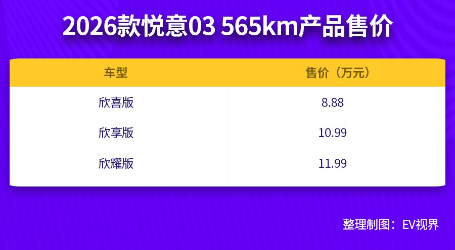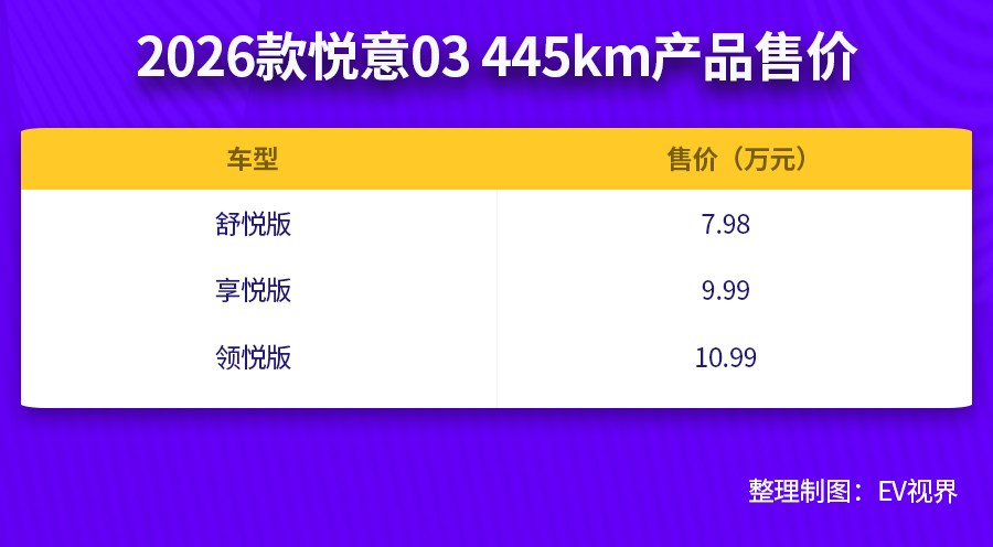仅需7.98万元起售 2026款悦意03全面焕新而来