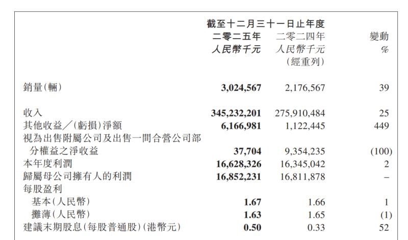 在整体销量迈上新台阶的背景下,规模效应进一步显现,吉利单车固定成本持续被摊薄,整体毛利率稳定在16.61%,为利润稳健增长筑牢根基。更具战略意义的是,300万辆的年销量体量,让吉利在供应链议价、渠道网络布局及品牌影响力等方面构筑起更强竞争壁垒,也为后续深化全球化与高端化战略提供了坚实支撑。