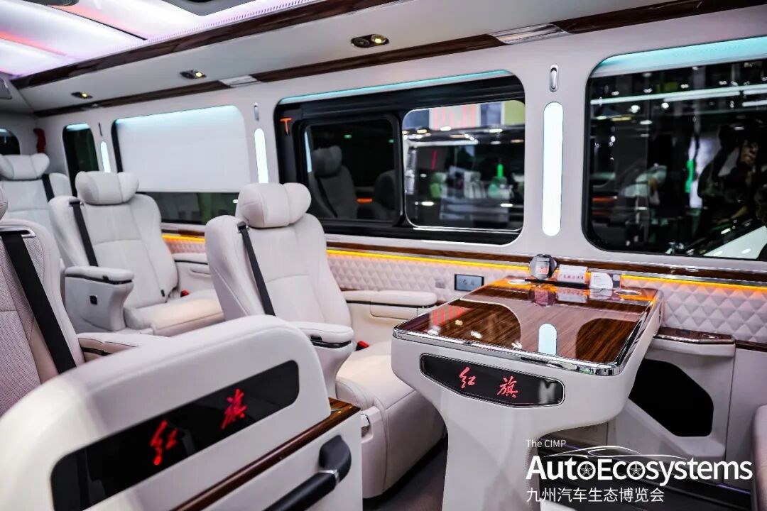 红旗全国首发高端定制商务车红旗国悦·天玺,凭借全舱奢享定制、专属外观涂装与行政级智能化座舱,主打顶级礼宾与私人定制领域。新车中轴旗标可全灯点亮,前杠加镀铬前唇、日间行车灯升级激光雕刻工艺,内饰换新桃木花色,车型标配12座布局与四张航空座椅,适配高端商务接待,整车配置齐全。