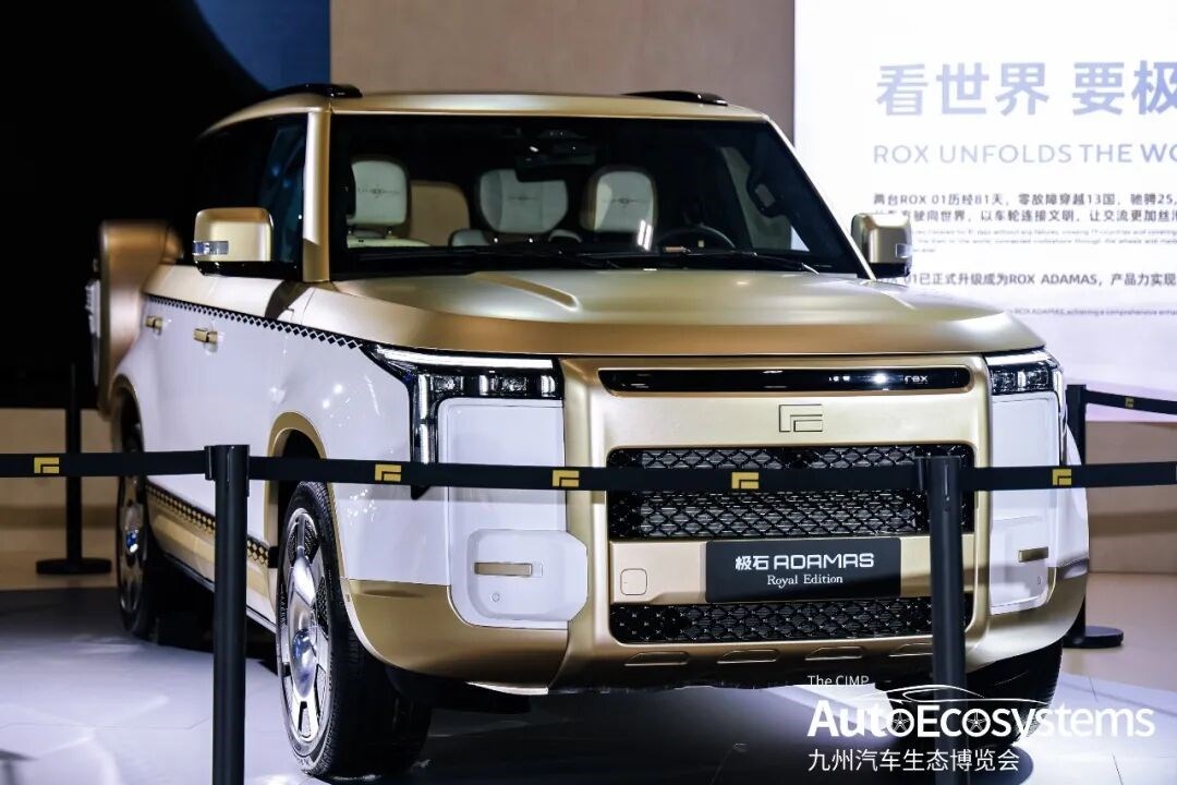 极石在这次深圳改装车展带来了Adamas皇家定制版,它是基于极石Adamas旗舰SUV打造的高端私人定制车型,该版本通过专属的外观配色与装饰套件、顶级材质的内饰(如高级真皮与手工饰板)、以及可能的专属科技配置与尊享服务权益,为用户提供超越标准版的极致奢华与个性化体验。