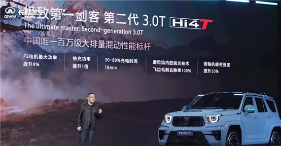 动力层面,两大系列车型针对不同使用场景做了差异化调校。其中Hi4-Z系列主打泛越野属性,搭载2.0T插电混动系统,发动机最大功率185kW,匹配容量59.05kWh的三元锂电池组,WLTC工况纯电续航190km,综合续航里程可达1191km,同时该车拥有合法拖挂资质,拖挂总质量为不带制动750kg、带制动2500kg,可满足轻越野、长途穿越、户外露营等多元场景需求。而Hi4-T系列聚焦硬核越野性能,搭载3.0T V6插电混动系统,系统综合功率385kW,综合扭矩800N·m,WLTC工况纯电续航90km,同时配备非解耦四驱结构,可保障极端越野场景下的动力持续输出,为硬核越野玩家提供充足性能支撑。