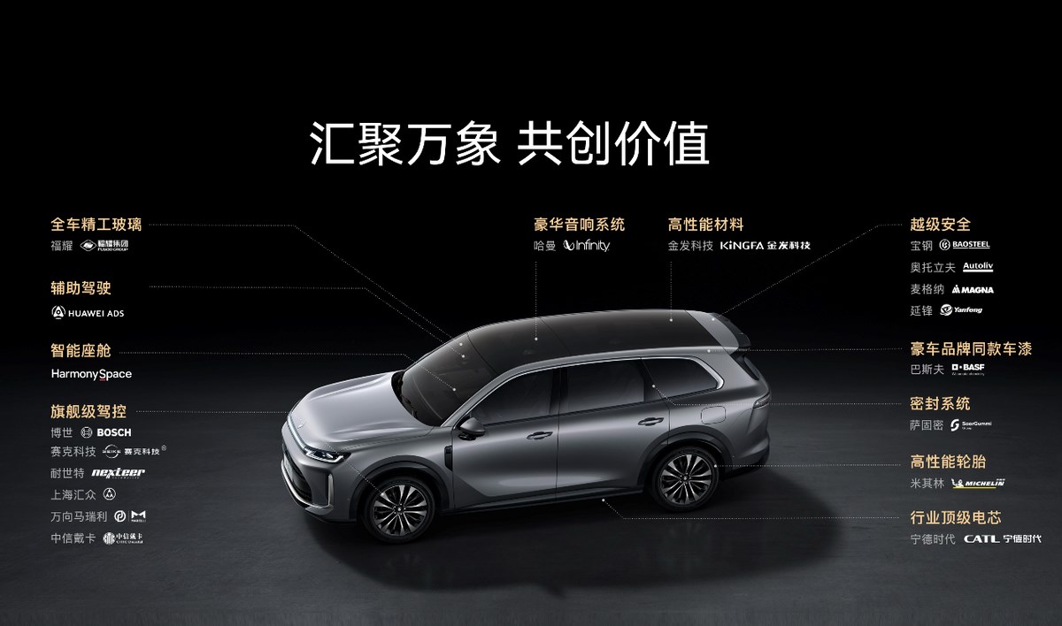 从产品力上看,它有底气。5235mm车长、3105mm轴距的真六座空间,全系标配华为乾崑智驾ADS Pro增强版和鸿蒙座舱5,宁德时代电池、宝钢2000MPa钢、奥托立夫气囊……这些硬指标放在20-25万的价位,确实有竞争力。