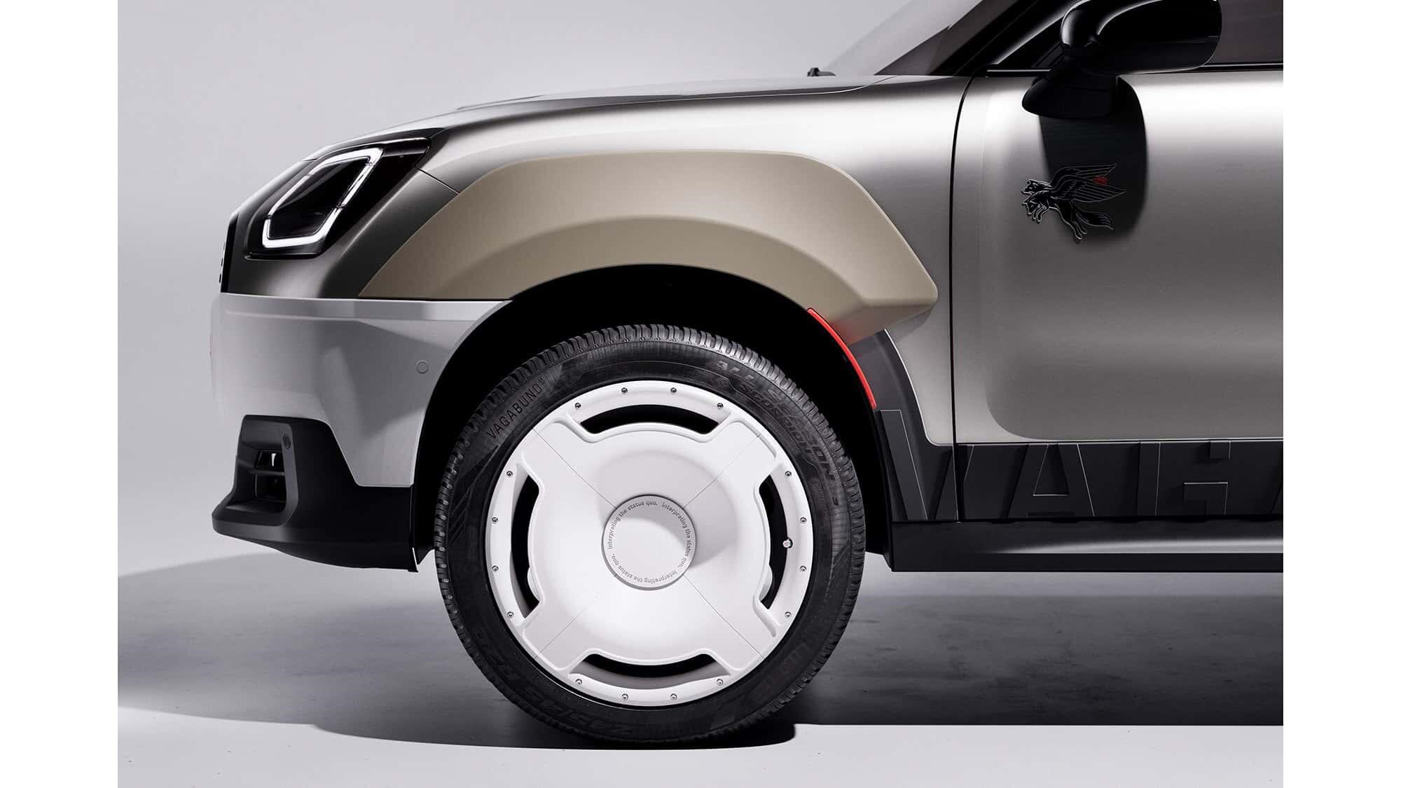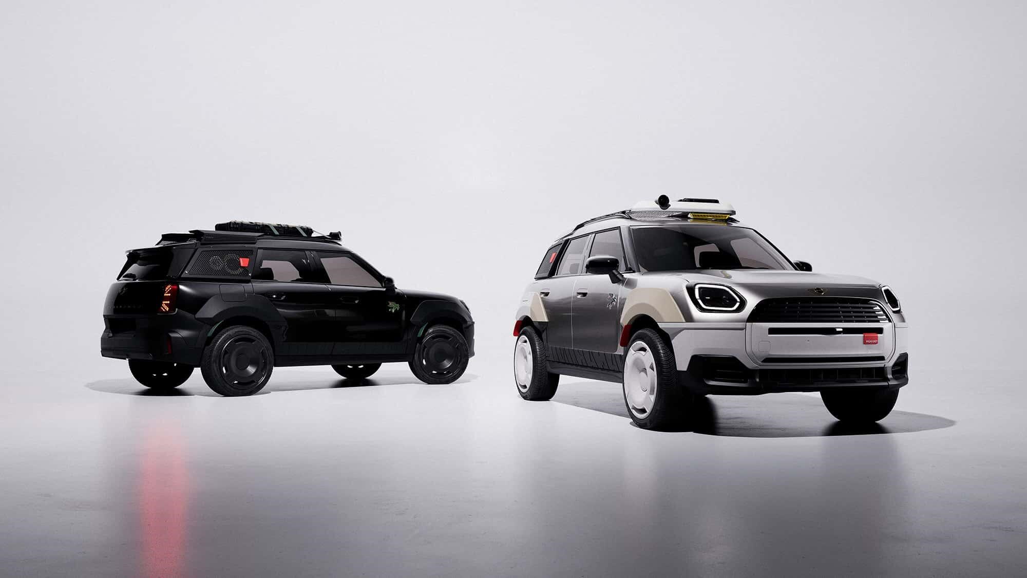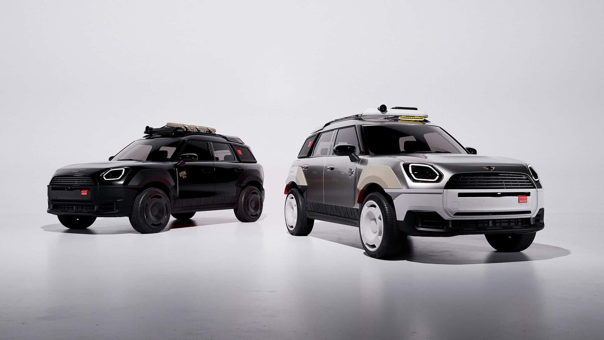 这两款展示车在技术上与量产车型基本保持一致,但在外观上发生了诸多变化。其中一款采用Melting Silver车身颜色,并搭配明亮的沙色点缀;另一款则以Midnight Black呈现,主打单色调、偏技术风格的设计。MINI与Vagabund有意识地将这两台车打造为一个整体组合。