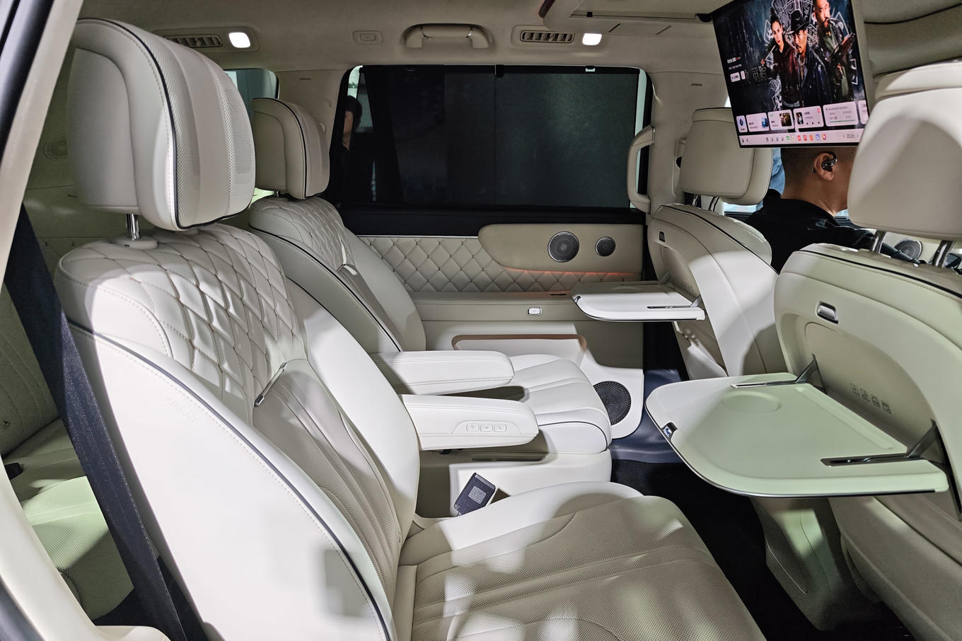 魏牌V9X搭载21.4英寸4K吸顶屏,以及带31个扬声器的Coffee AI Sound 音响系统,座舱面料还添加了红外反射涂层。此外,新车车身高强钢、镁合金及铝合金占比达到88%。