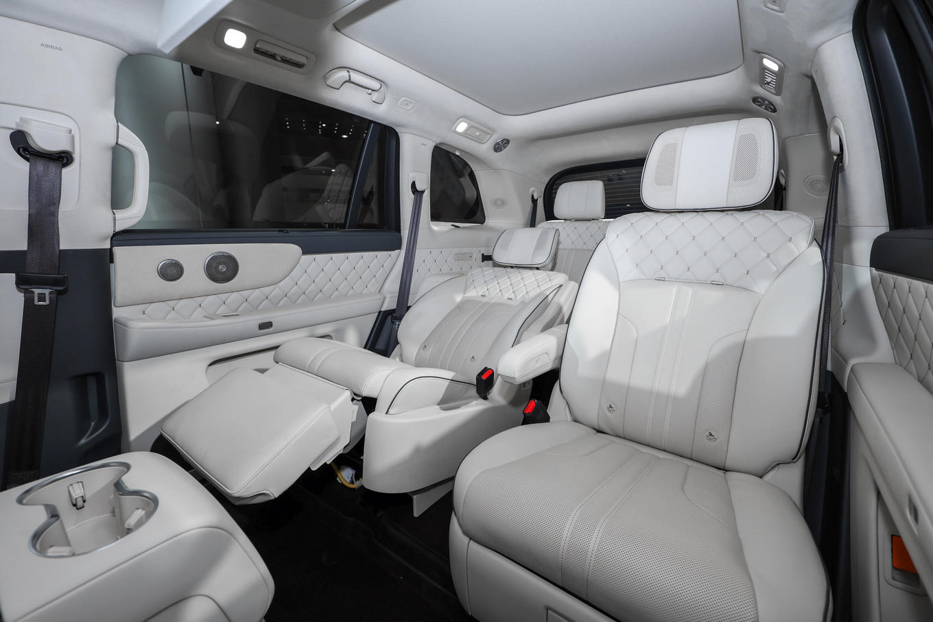 魏牌V9X是基于归元S平台的首款旗舰车型,车长接近5.3米,采用2+2+2六座布局,二排配备零重力座椅,支持最大123度后仰以及22点全身按摩。三排采用吧台式大沙发布局。全车配备4处50W无线快充,配备三排6窗独立遮阳帘以及48处人性化储物空间。
