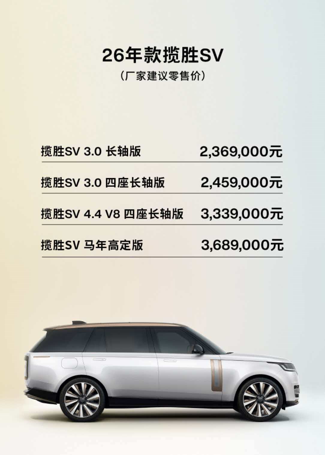 此次在北京,配置全球首创灵魂座椅及律动地毯的26年款揽胜SV和揽胜运动SV分别以236.9万起和195万起的价格上市,而那款限量3辆、售价为368.9万元的SV马年高定版,更是当场售罄,揽胜高定的魅力可见一斑。