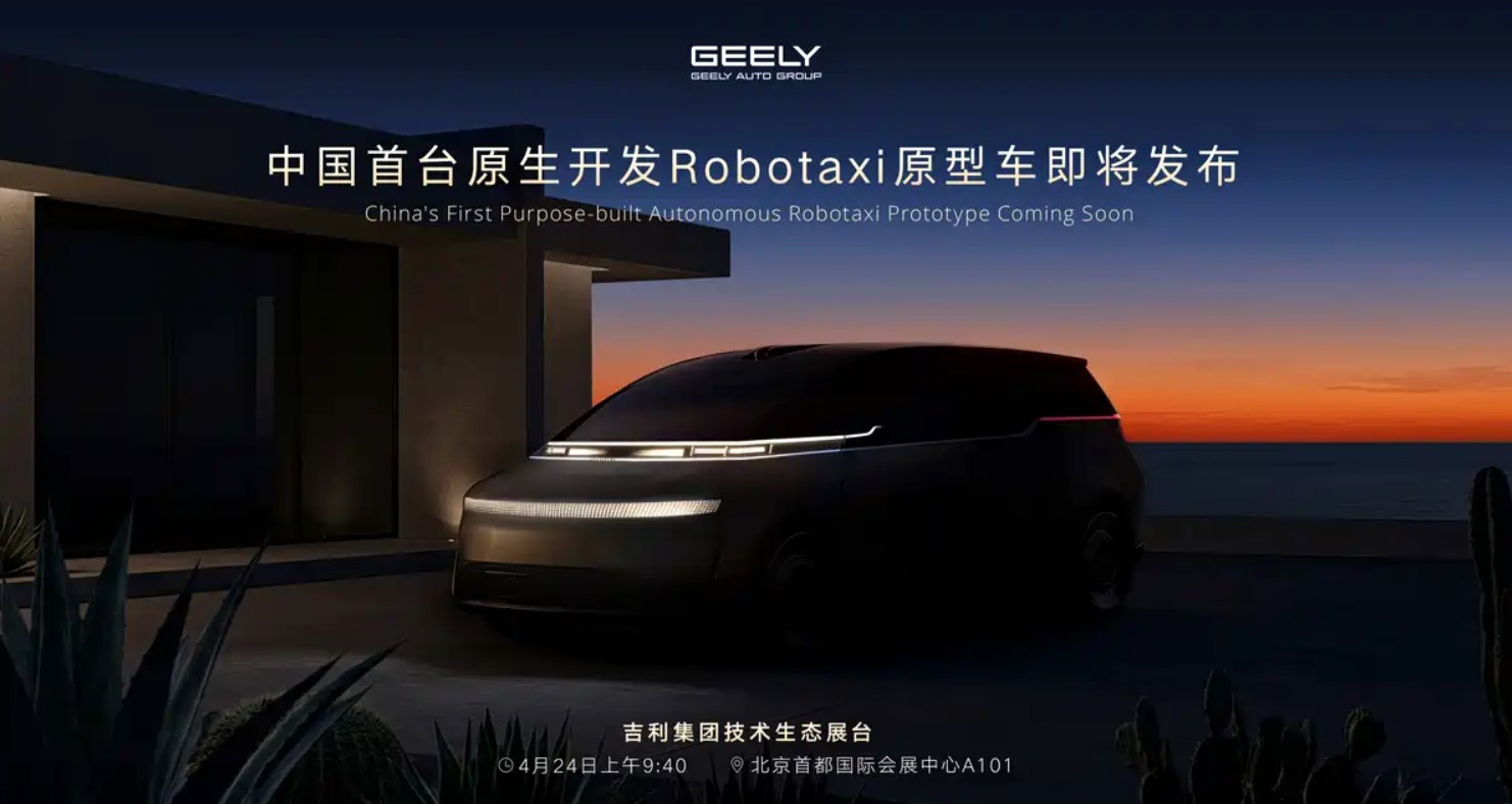 4月21日,买车网Buycar从吉利汽车集团官方了解到,其首台原生Robotaxi原型车将在4月24日开幕的北京车展上完成亮相。该车基于吉利L4级AI数字架构开发,融合WAM世界动作模型与L4级自动驾驶技术,车端算力与感知硬件能力将突破行业上限,并引入物理AI能力。
