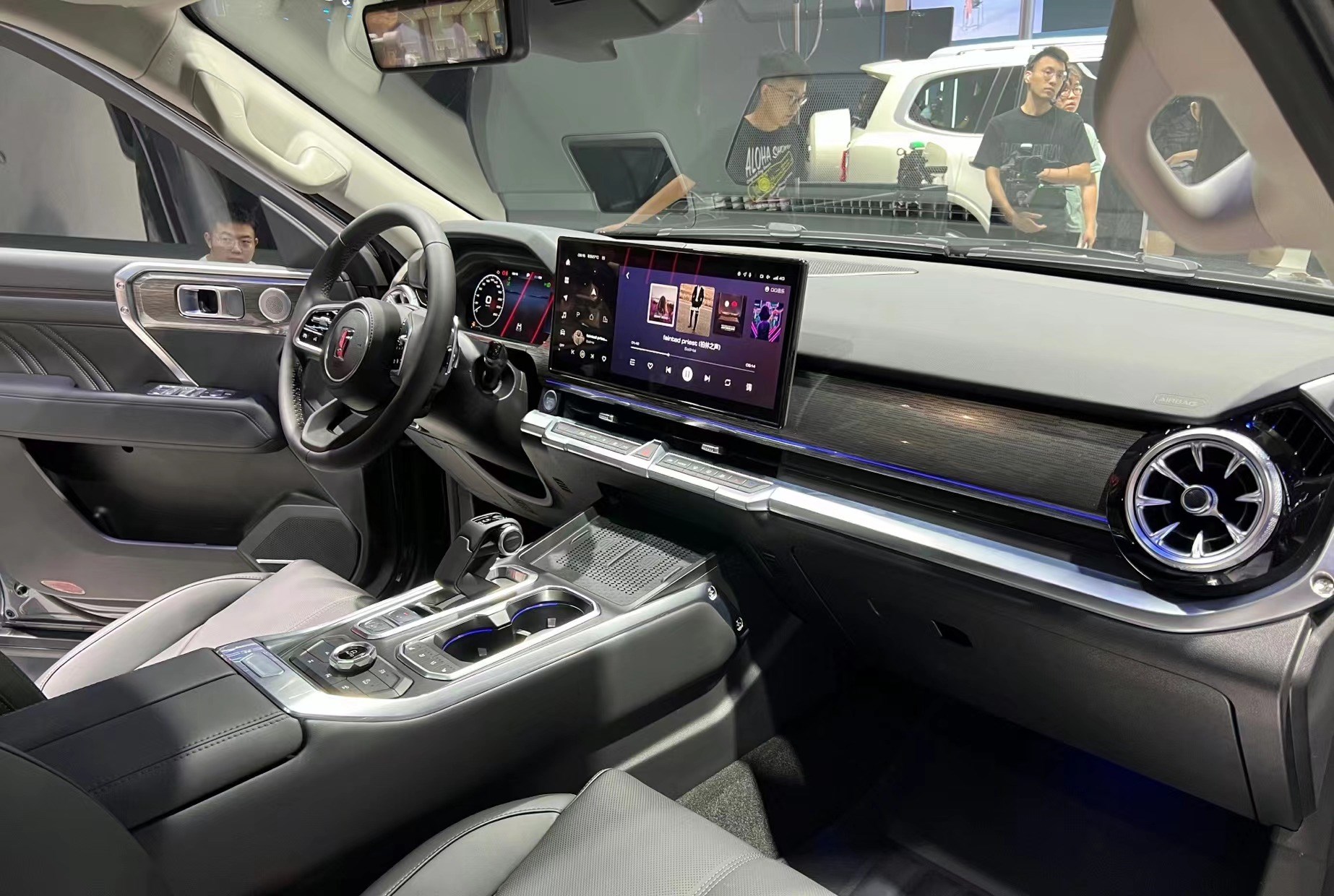 相比于外观的粗犷,车内则是另外一番景象,12.3英寸液晶仪表+16.2英寸超大中控屏+HUD抬头显示+流媒体后视镜,带来科技满满的驾乘体验,而软质材料和高亮黑色饰板的使用,也让其颇具质感。
