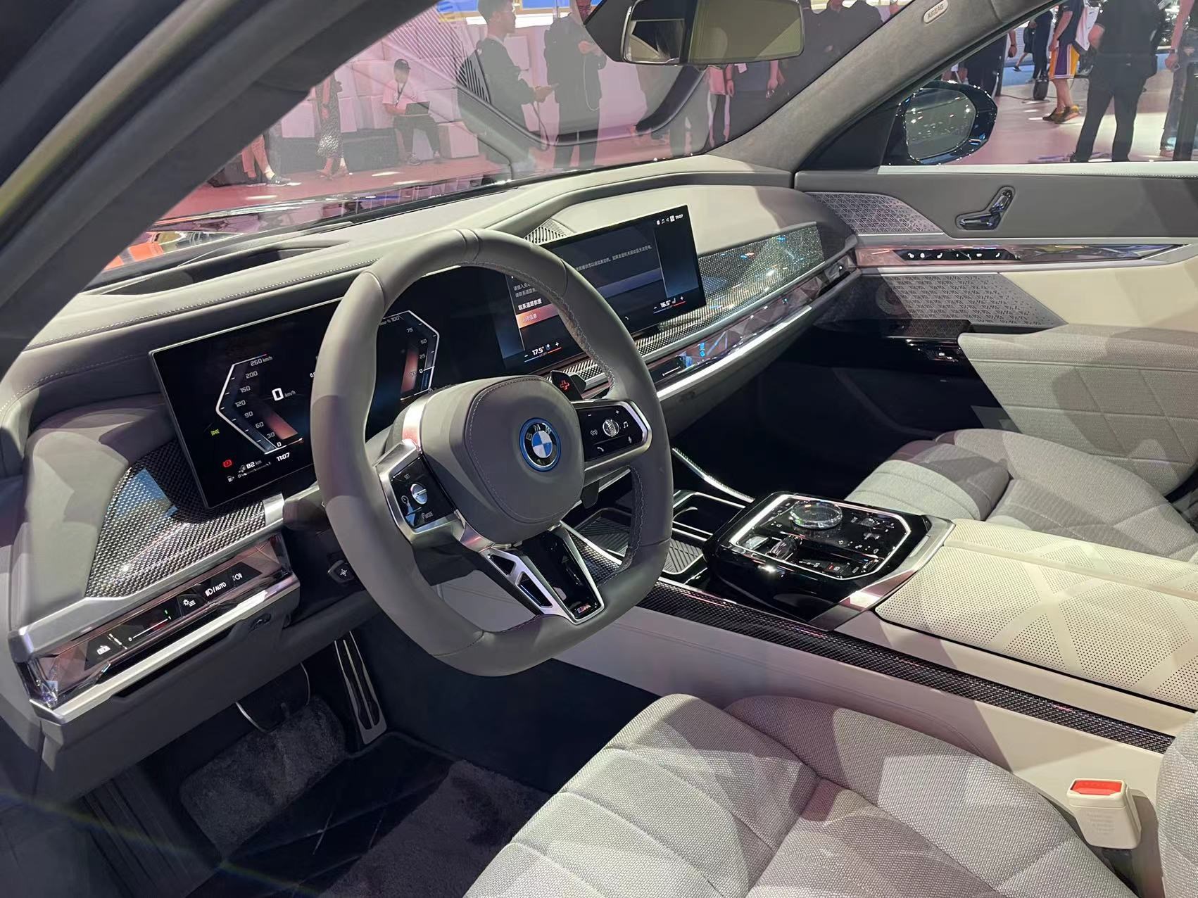 新车内饰延续7系的设计,配备由12.3英寸全液晶仪表盘和14.9英寸中控屏组成的一体式大屏,搭载第8代BMW iDrive系统。此外,作为旗舰车型,新车在用料上也更加豪华,并在细节处融入一些凸显运动属性的设计元素,比如M徽标、运动座椅等。