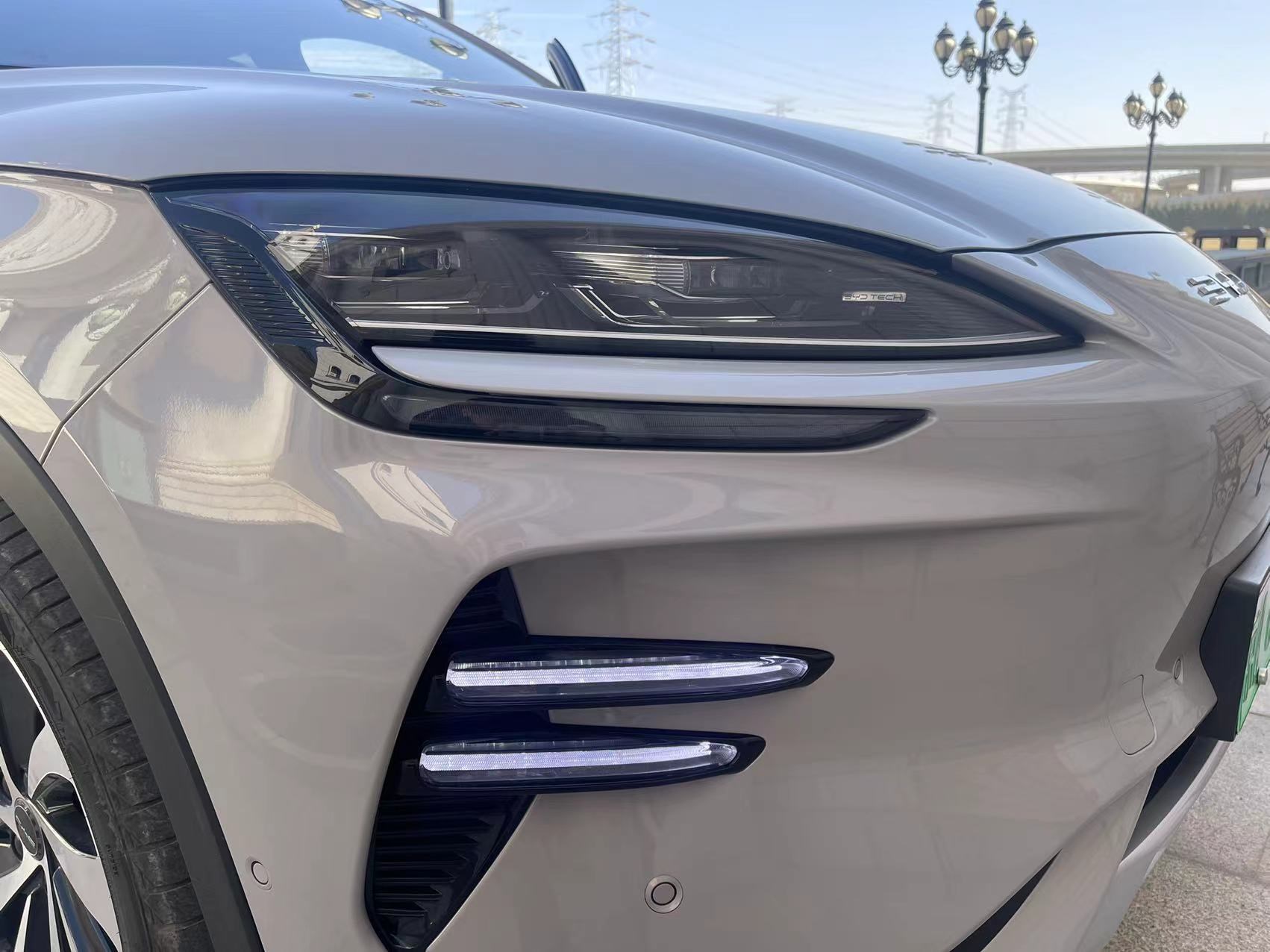 细节上,根据车型不同造型也有所不同,宋PLUS DM-i荣耀版车型前脸采用梯形无边界格栅设计,而堂主试驾的宋PLUS EV荣耀版车型前脸则使用了封闭式设计,且前包围两侧带有横向装饰件,不仅彰显出更别致的时尚气息,还能能让消费者对二者进行很好的区分。