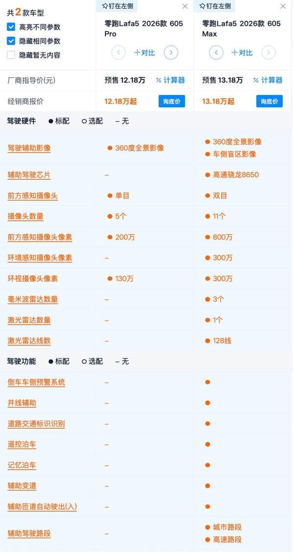 价格来看,这两台车的差价依然是1万元,而Max版比Pro版多出的主要配置就是一颗128线的激光雷达。
