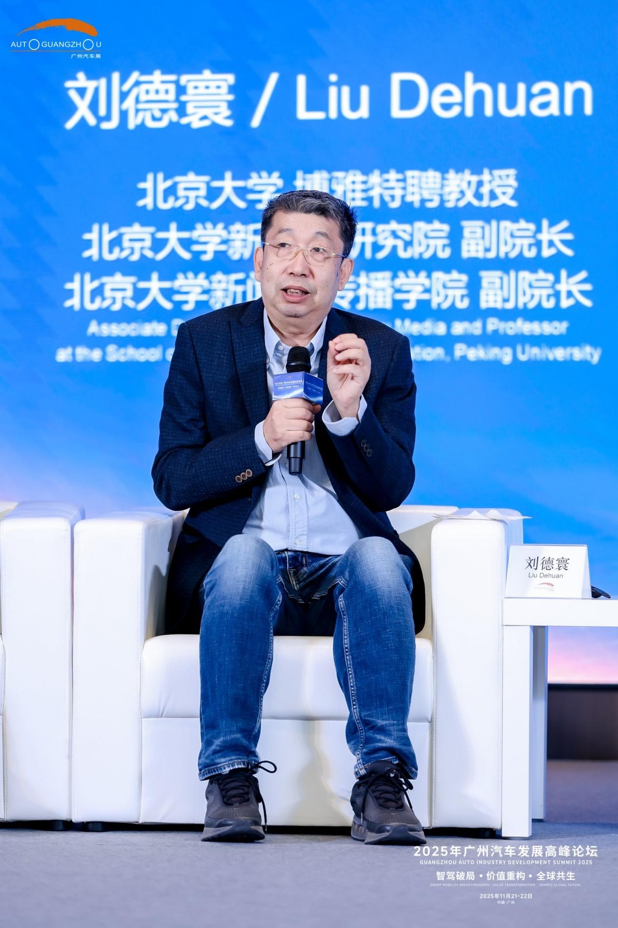 买车网Buycar获悉,11月21日,2025广州汽车发展高峰论坛正式开幕,在以“汽车消费:快速迭代与价值重构”的头脑风暴中,北京大学博雅特聘教授,北京大学新媒体研究院副院长,北京大学新闻与传播学院副院长刘德寰围绕汽车消费趋势、爆款逻辑与品牌建设三大核心议题,输出了极具洞察力的观点。