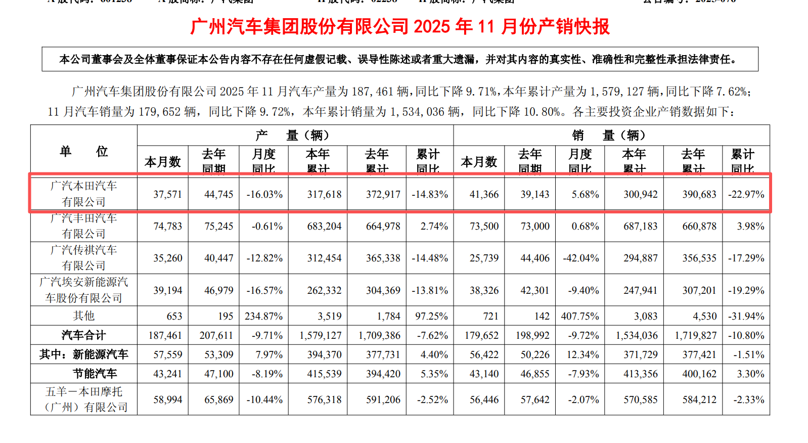 按照【本田中国】发布的数据,11月Honda在中国的终端汽车销量为5万辆,同比环比继续大幅下滑。广汽集团的产销数据显示,广汽本田11月销量为41366台,而东风本田的11月销量暂时未公布,据公开报道,其10月销量为29678台。