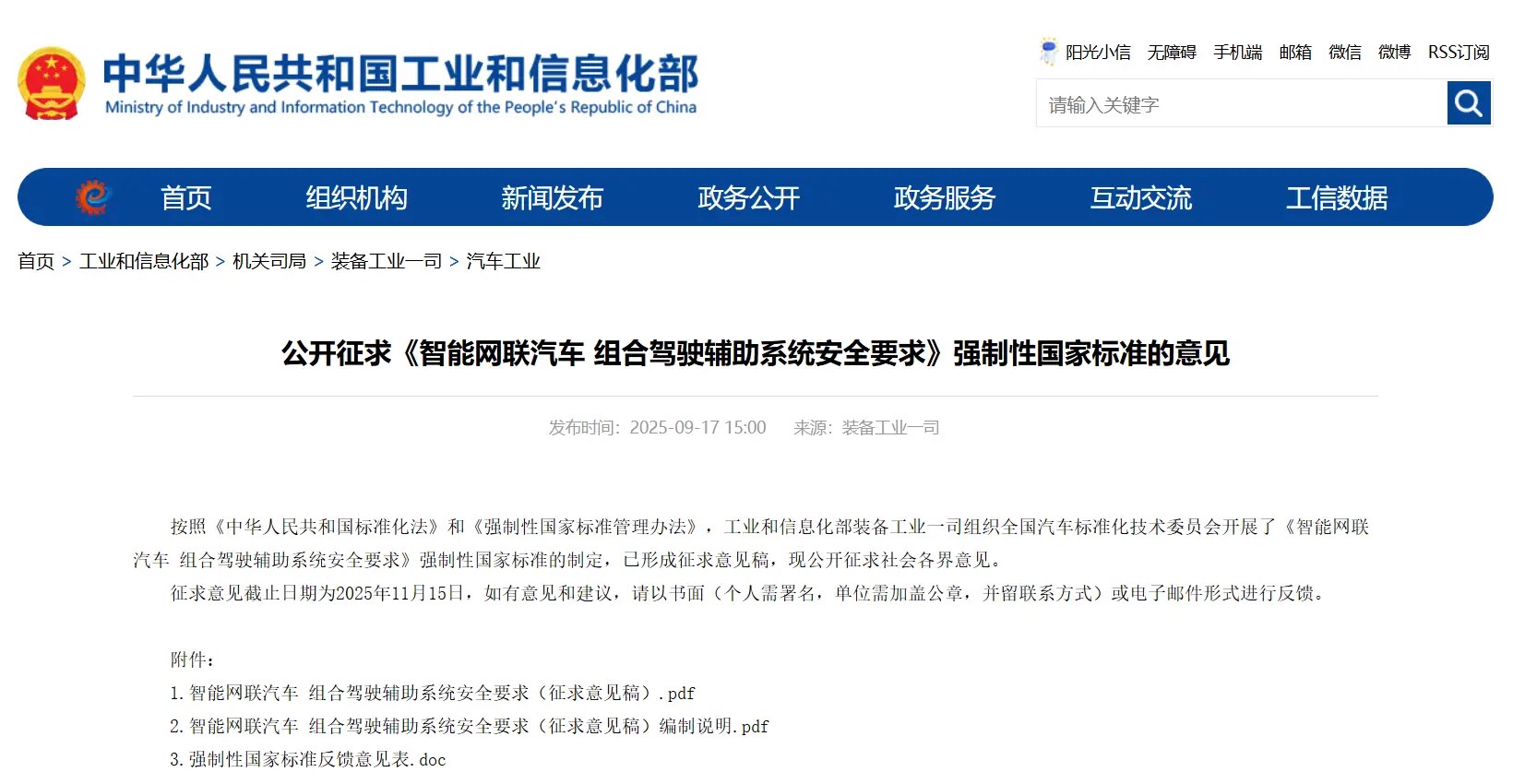 除此之外,9 月工信部又发布了《智能网联汽车 组合驾驶辅助系统安全要求》强制性国家标准(征求意见稿),成为行业安全发展的“里程碑”。据了解,标准聚焦L2级辅助驾驶,明确三大核心要求:一是系统激活范围限定于设计运行条件内,领航辅助功能禁止实线换道、需具备限速控制能力;二是强化驾驶员主体责任,要求系统具备手部脱离检测、视线偏离监测功能,异常情况下需实现“报警-提示-可控退出”的阶梯式应对,多次违规使用将临时禁用;三是建立“场地测试+道路验证+文件审核”三层验证体系,新增施工路段、侧翻风险等本土复杂场景测试,填补了此前辅助驾驶功能缺乏统一安全标准的空白。