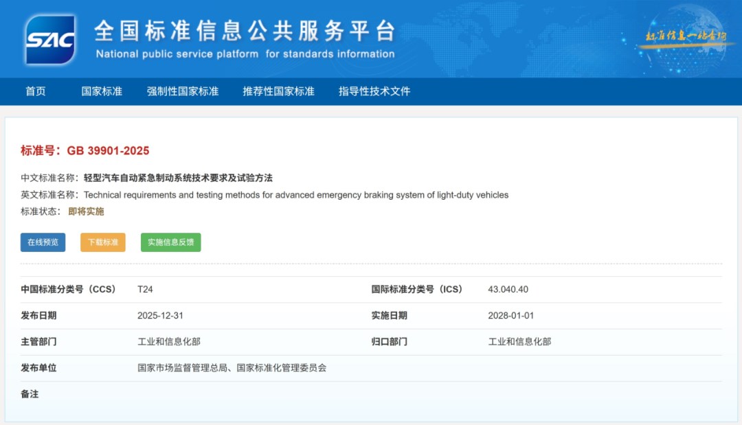 在主动安全领域,《轻型汽车自动紧急制动系统技术要求及试验方法》作为我国汽车驾驶辅助系统领域首个强制标准,大幅提升了技术要求。该标准覆盖M1类乘用车、N1类轻型载货汽车,明确了自动紧急制动系统的一般要求、性能指标和试验方法,新增儿童行人、自行车等弱势目标碰撞预警试验,细化误响应控制要求,规定紧急制动减速度绝对值最大值不低于5.0m/s²,进一步降低交通事故发生率。这一标准的实施将有力推动AEB技术从“有”到“优”的升级,显著降低交通事故发生率。