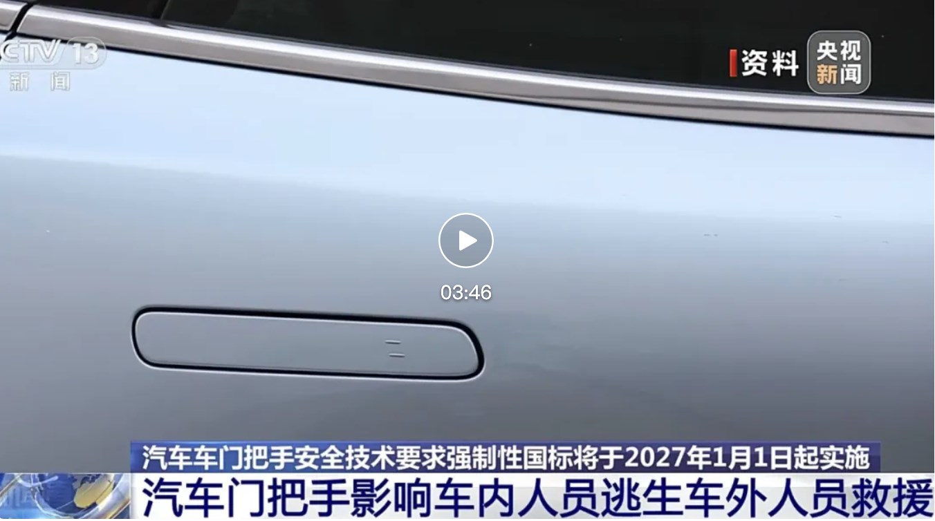 在被动安全领域,《汽车车门把手安全技术要求》针对性解决电动化、智能化转型中隐藏式门把手等新型产品带来的安全隐患。作为强制性国家标准,新标准明确了车门把手在碰撞、冰冻、断电等极端情况下的应急开启要求,规定了机械冗余备份的必要性。这一标准不仅填补了行业相关标准空白,更体现了“以人为本”的安全设计理念,将安全考量渗透到每一个产品细节中。