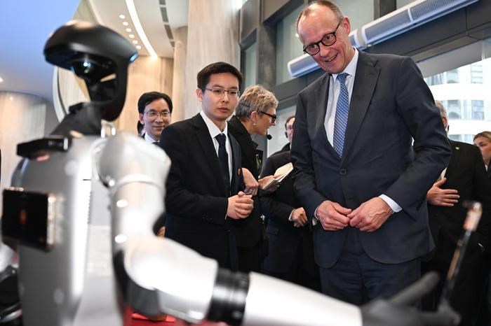 前几天,德国总理默茨带着德国的工业高管天团,参观了宇树科技的机器人。