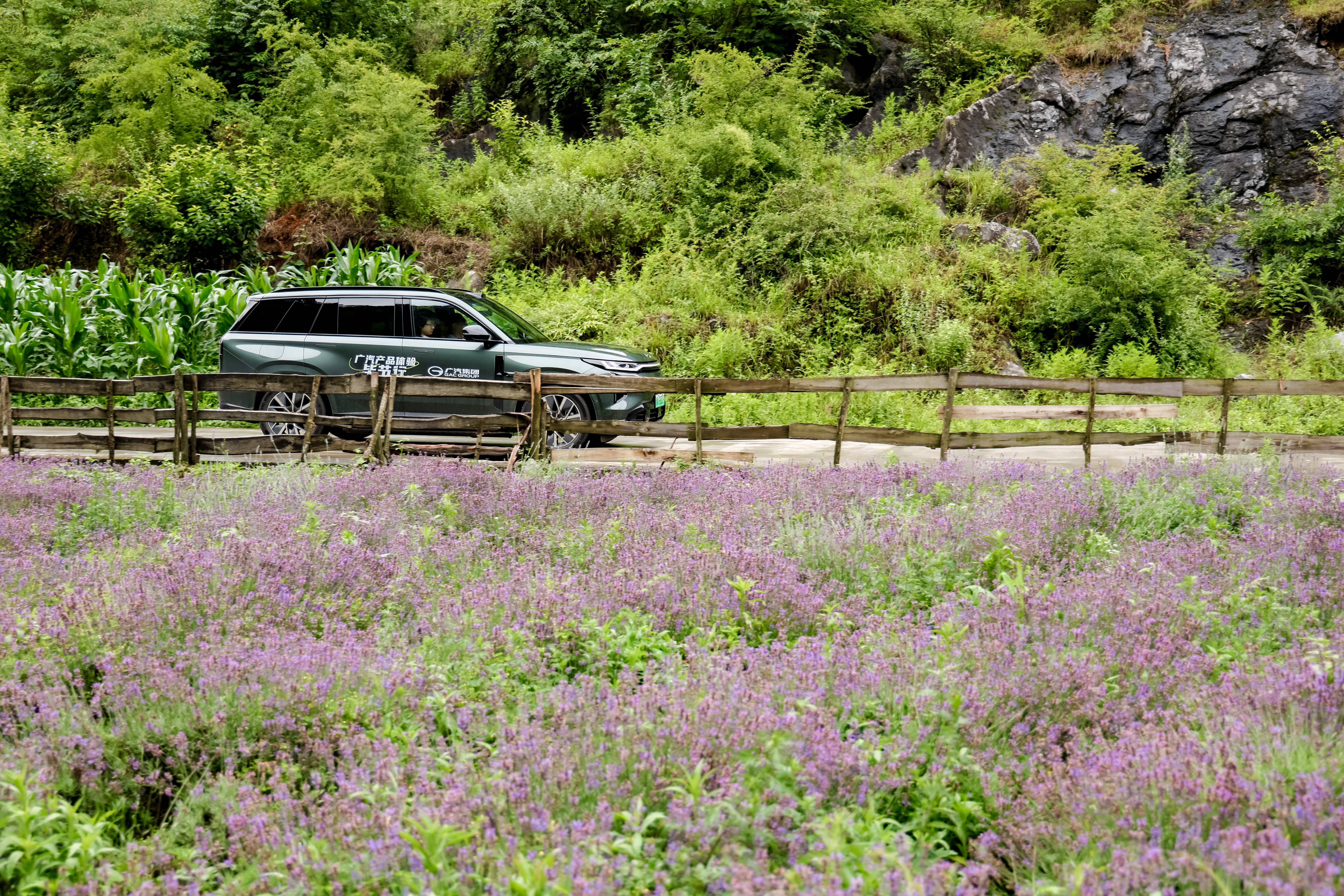 广汽新能源车队实地探访李子村芳香产业种植基地