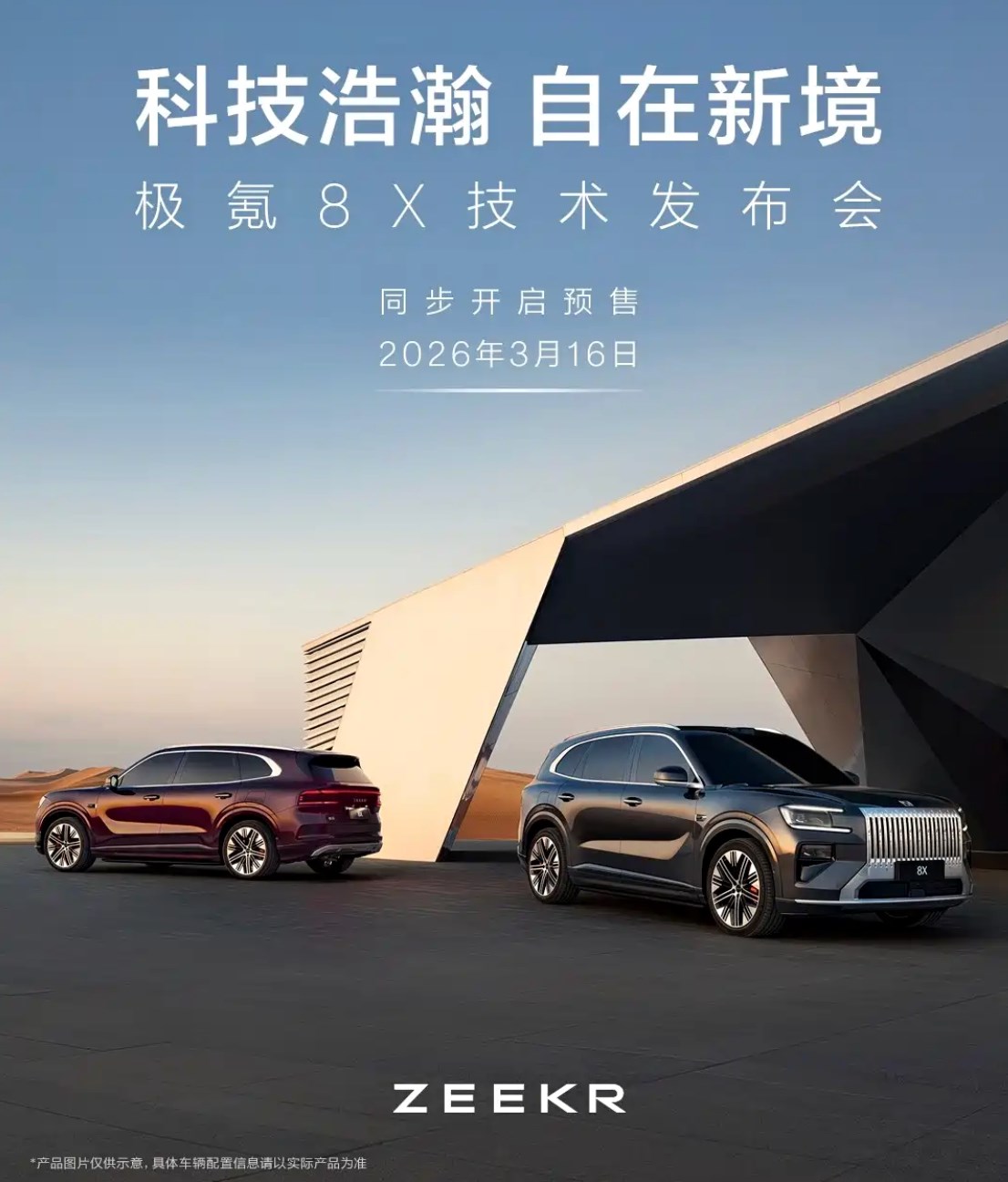 日前,买车网Buycar获悉,极氪官方发布信息,极氪8X将于3月16日召开技术发布会,并同步开启预售。新车基于SEA-S超级电混架构打造,将会首发搭载新一代G-ASD高阶辅助驾驶系统,计划于二季度完成上市,入门版车型预计售价43万元左右,顶配车型售价或在55万元以上。