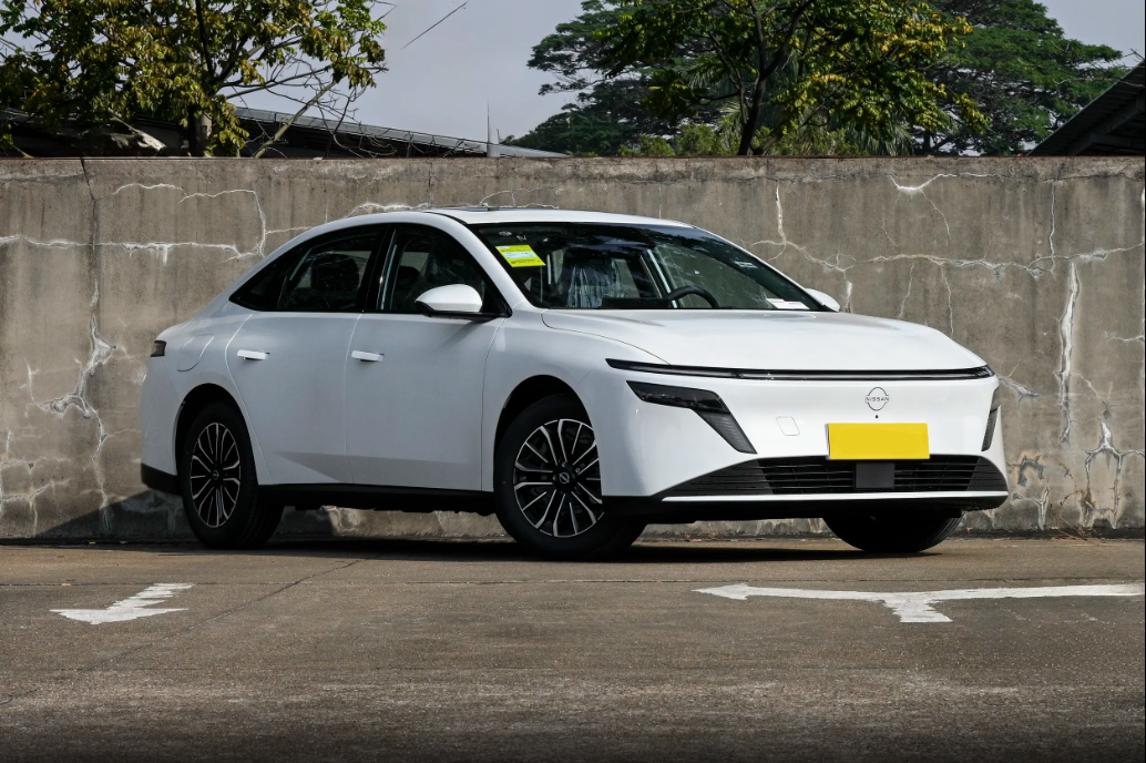 来到车身侧面,可以看出风弧式极简腰线贯穿车身,加之采用了隐藏式门把手,其侧面造型颇为动感,配备了大尺寸铝合金轮圈再次提升了车辆的运动气息。另外,车辆的尾部造型简洁干练,贯穿样式“飓风之眼”尾灯内部融入了“NISSAN”字标,点亮后辨识度较高,后备厢上沿略微上翘的小鸭尾为尾部增添了一丝运动气息,使整体视觉效果更具张力。