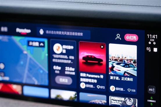 还有个惊喜,保时捷成了首个搭载定制版车载小红书的豪华品牌,这款APP先装在新款Panamera尽享版上,之后会逐步覆盖911、Cayenne等2025年款及以后的车型。除了平时的社交功能,还有专属资讯、AI自驾路书、语音搜索,开车时也能轻松用,实现线上社群和线下出行无缝衔接。