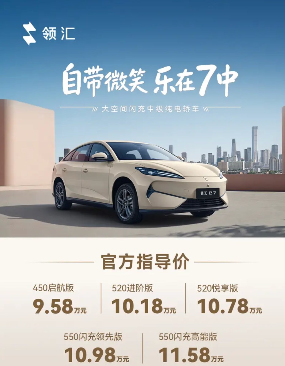 4月15日,买车网Buycar获悉,比亚迪全新汽车品牌领汇汽车宣布领汇e7正式上市,新车共推出5款车型,官方指导价区间9.58万元-11.58万元。领汇e7聚焦营运市场与日常出行双场景,搭载比亚迪第二代刀片电池及闪充技术,能实现“5分钟充好、9分钟充饱、零下30℃只多3分钟”的高效补能。