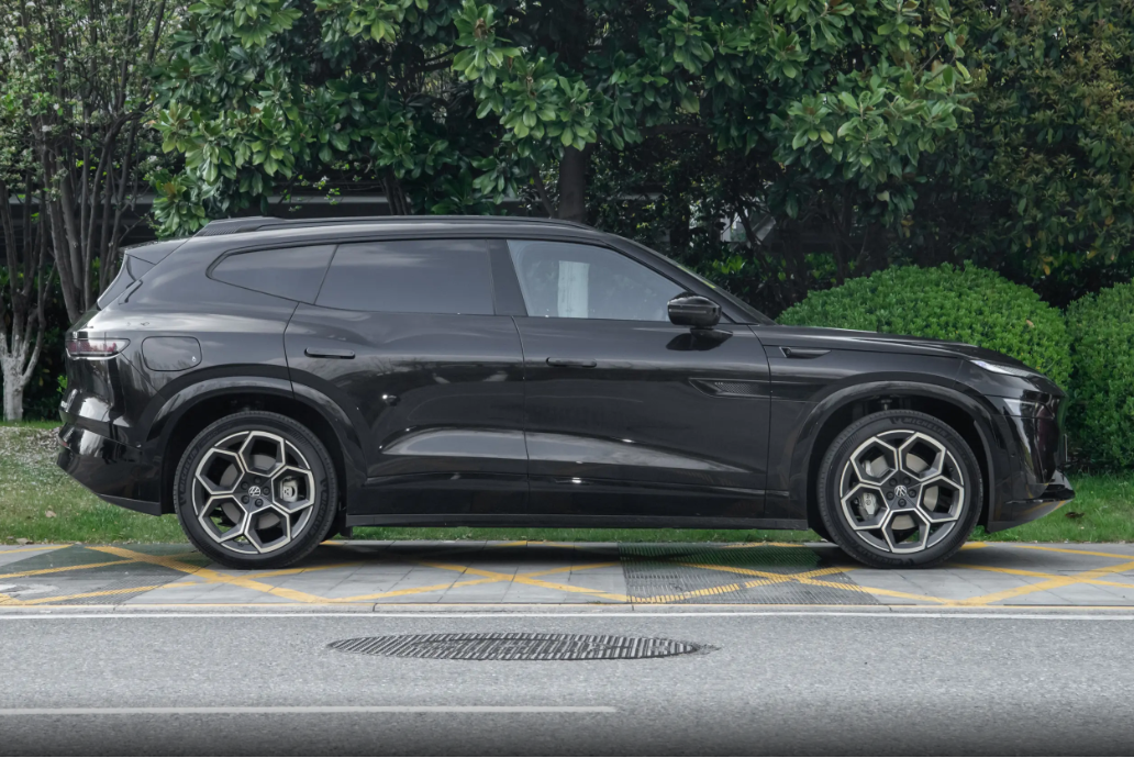 车身侧面线条很舒展,短前悬长后悬的设计显得车身特别修长。隐藏式门把手、无框车门这些细节,不仅看着干净,还能降低风阻,对续航也有帮助。大尺寸轮毂样式精致不浮夸,转起来光影好看,开着也稳。车尾和前脸相呼应,贯穿式尾灯简洁规整,狼头高位刹车灯很有特点,晚上开车也更安全。整车缝隙均匀,做工很扎实,一看就是大厂出品,没有那种廉价的拼凑感。