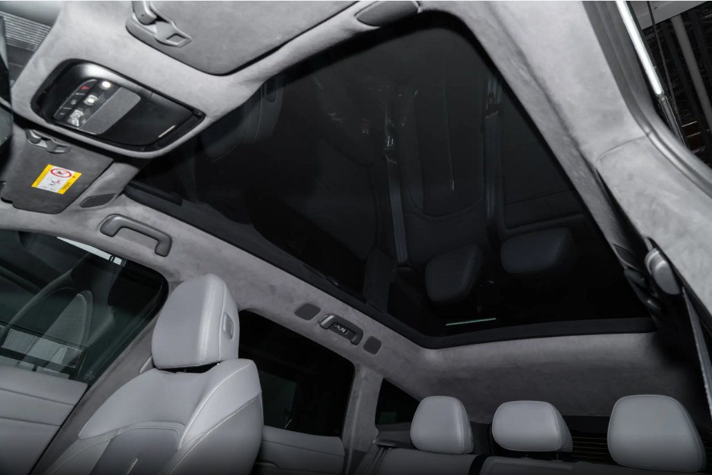 配备了1.74平米的可调光全景天幕,还有能选装的车载冷暖冰箱,加上隐藏式的智能香氛、多色氛围灯,用着都特别顺手。那个全景天幕能调透光,夏天太阳毒的时候,调暗点就能挡住强光,再也不用担心晒着孩子、伤孩子眼睛;到了晚上,调亮了就能躺着看星星,一家人出门,孩子别提多开心了,也多了不少乐趣。